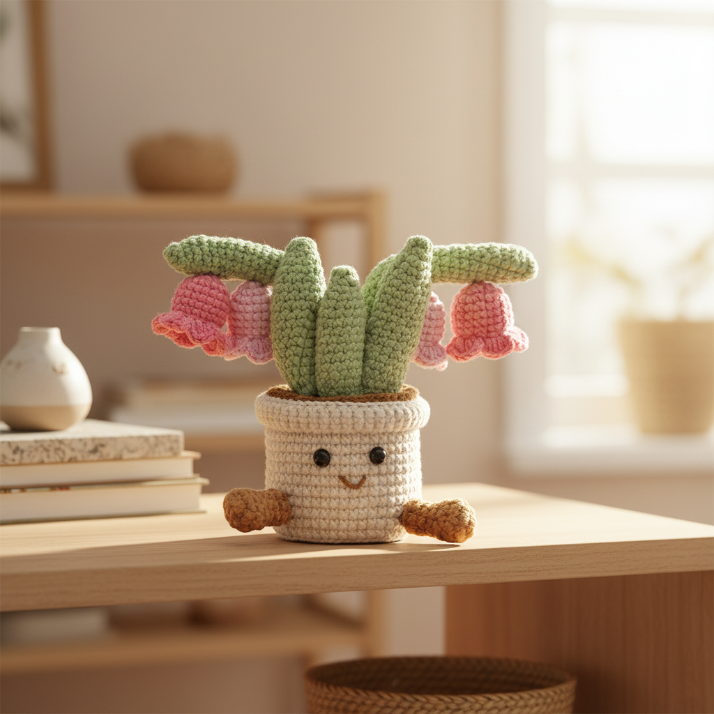 Bring joy and warmth to your space with this adorable smiling planter! Featuring a white ceramic pot with a kawaii-style face — round black eyes, a curved brown smile, and tiny brown arms — it holds a fresh green cactus topped with delicate pink blossoms. The soft pastel tones and playful design make it perfect for brightening up your home, office desk, or bedroom. A wonderful gift for plant lovers, friends, or anyone who appreciates cute and cozy decor.